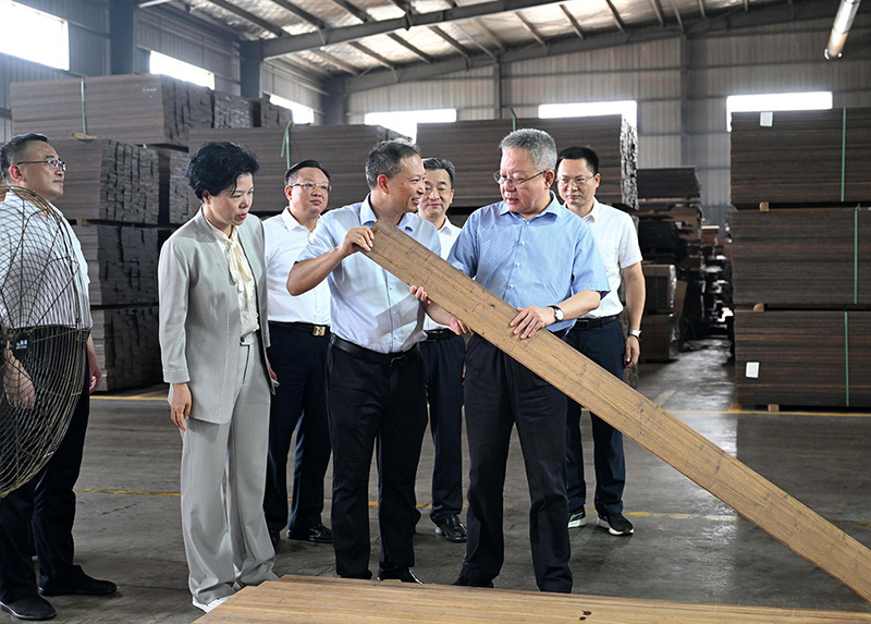 2025年6月16日,省政協(xié)副主席虢正貴來湖南桃花江竹材科技股份有限公司調(diào)研生態(tài)資源轉(zhuǎn)化與特色產(chǎn)業(yè)融合發(fā)展。公司董事長、省人大代表薛志成陪同并介紹情況。虢正貴充分肯定了桃花江竹材在竹資源利用及竹特色產(chǎn)業(yè)融合發(fā)展所取得的成果,他鼓勵(lì)企業(yè)繼續(xù)發(fā)揮龍頭優(yōu)勢(shì),充分利用好桃江資源稟賦和產(chǎn)業(yè)優(yōu)勢(shì),深化產(chǎn)學(xué)研融合,提升竹產(chǎn)業(yè)附加值,為民族地區(qū)生態(tài)資源高效轉(zhuǎn)化和特色產(chǎn)業(yè)融合發(fā)展探索更多經(jīng)驗(yàn)。